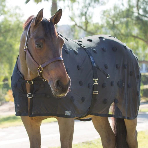 Benefab products are made to improve your horse's performance, increase blood circulation, and reduce muscle stiffness and joint pain. Whether you have a performance horse or just want to help out your pleasure horse, or retired horse, the Benefab Smart Scrim is perfect. The Benefab Smart Scrim is made of strong, breathable mesh that is infused with far-infrared emitting minerals (ceramic therapy) along with 90, 1100 gauss magnets that are placed over key acupuncture points. By placing the magnets in those key spots, blood is continuously being pulled to the area during and after wearing the smart scrim.